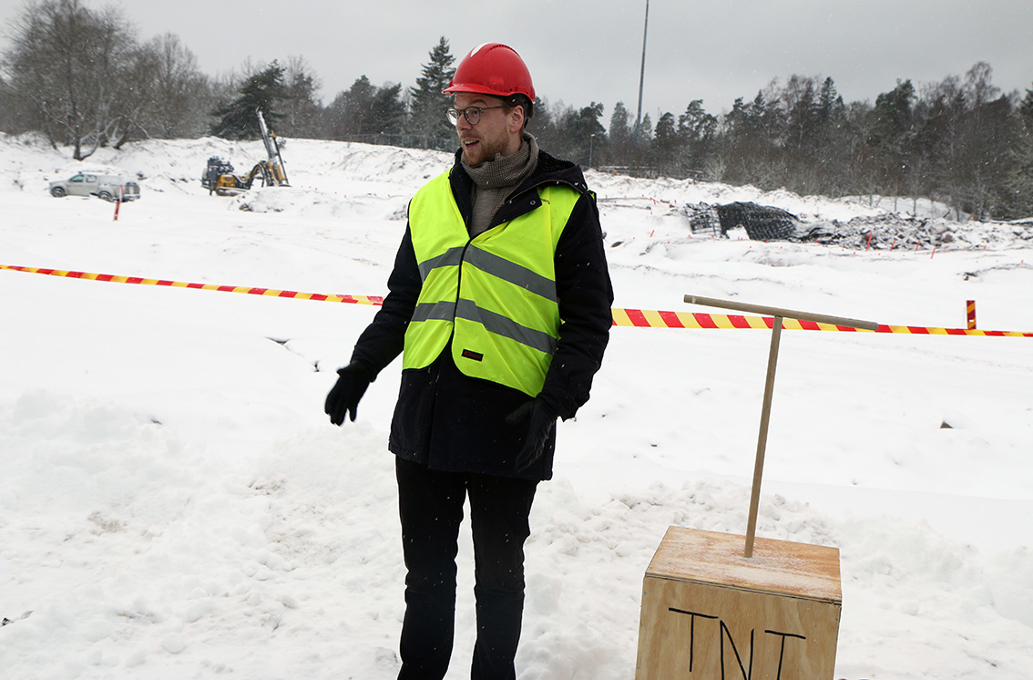 – Totalt kommer vi att använda 8 800 ton sprängmedel, säger ByggDialogs projekt Lars Lundmark.