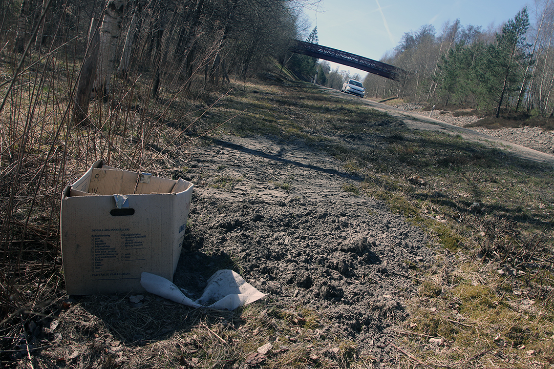 Vi tog en tur längs Halmstadsvägen, Gröndalsleden, Ljussevekaleden till Bredasten för att bilda oss en uppfattning av läget. Längs vägen återfanns flyttkartonger, plastremsor, tejprullar, jackor och mycket mer slängt i dikena.