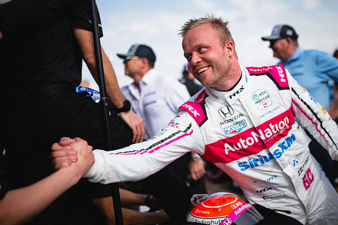På plats för att stötta Rosenqvist och Meyer Shank Racing under premiärhelgen i Florida fanns rockikonen Jon Bon Jovi, vars bands egen radiokanal Bon Jovi Radio prydde sidan av Rosenqvists indycarbil.