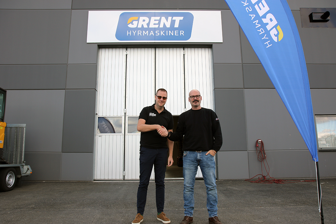 Adam Bylander, vd på Tätab-gruppen, och Magnus Rundbladh, platschef på G Rent Värnamo, välkomnar det nya samarbetet. Bild: David Alin