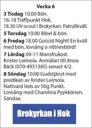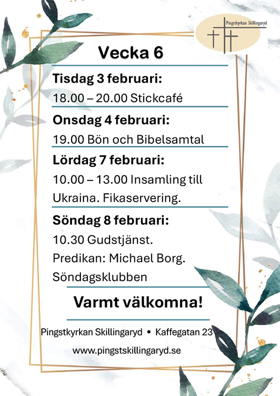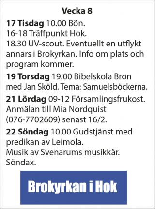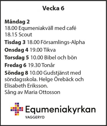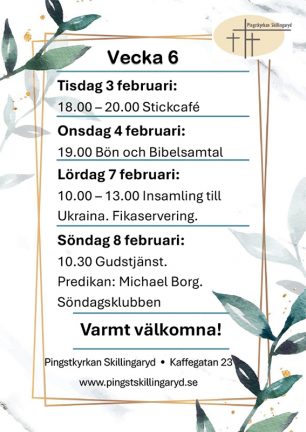 Det händer Veckovis 2026 Vecka 6 2026 Vecka 7 2026 Vecka 8 2026 Vecka 9 2026 Vecka 10 2026 Vecka 11 2026 Vecka 12 2026 Vecka 13 2026 Vecka 14 2026 Vecka 16 2026 Vecka 17 2026