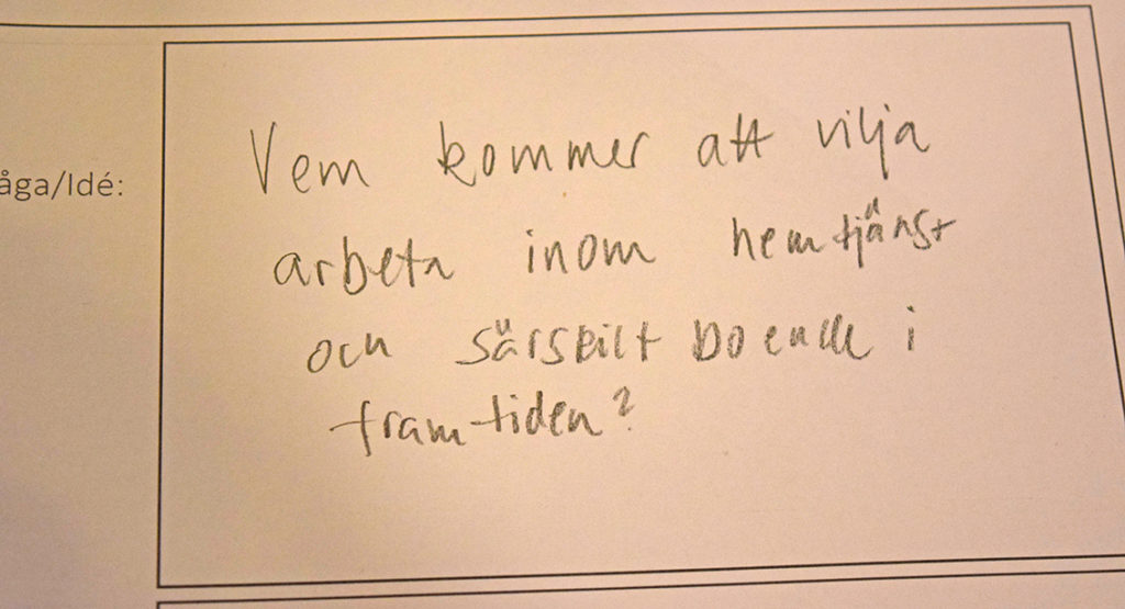 Under mötet inkom också några skriftliga frågor och idéer: