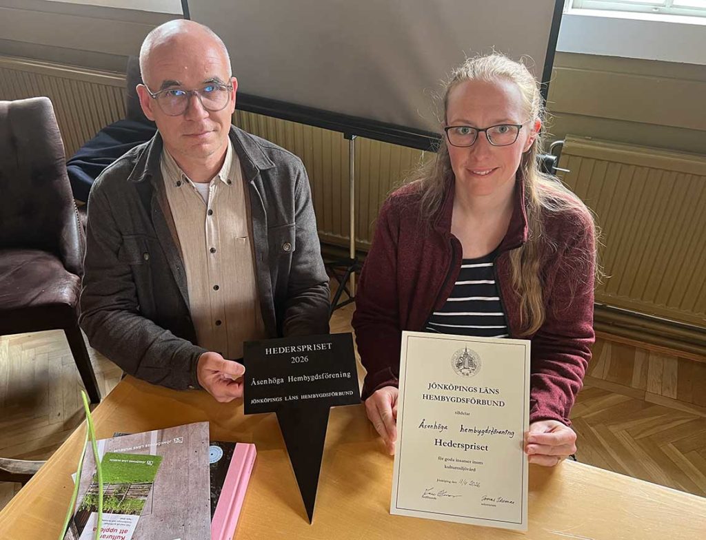 Priset togs emot vid årsmötet med Jönköpings Läns Hembygdsförund i Stadsparken i Jönköping.