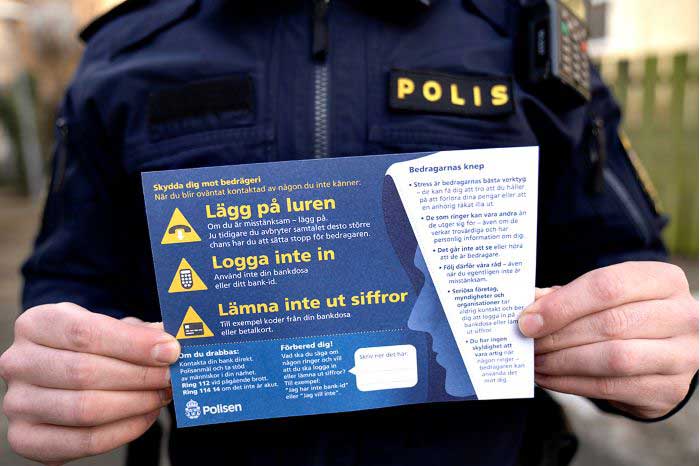 – En viktig framgångsfaktor för att förhindra telefonbedrägerier är att den som tar emot samtalet är mentalt förberedd redan innan telefonen ringer. Det är lättare att agera som man vill om man har tänkt ut det i förväg. Vi har hört många berätta att de tidigt i samtalet upplevt att något är fel – men ändå inte lagt på luren eftersom bedragarna verkar trovärdiga och lyckas stressa den uppringda, säger Carina Persson som är regionpolischef i polisregion syd:
