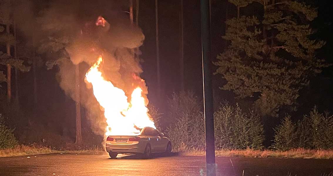 Vid fyratiden får polisen ett larm om bilbrand på en parkeringsplats i Anderstorp inkommer. På plats kan det konstateras att två bilar antänds och att branden spridit sig till en tredje bil. Polisen har hört vittnen som sett en person röra sig på platsen i anslutning till att branden startade och en anmälan om mordbrand har upprättats. I nuläget är ingen gripen eller frihetsberövad i ärendet. Brandplatsen har spärrats av och teknisk undersökning ska göras.