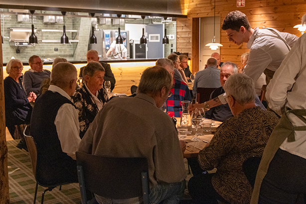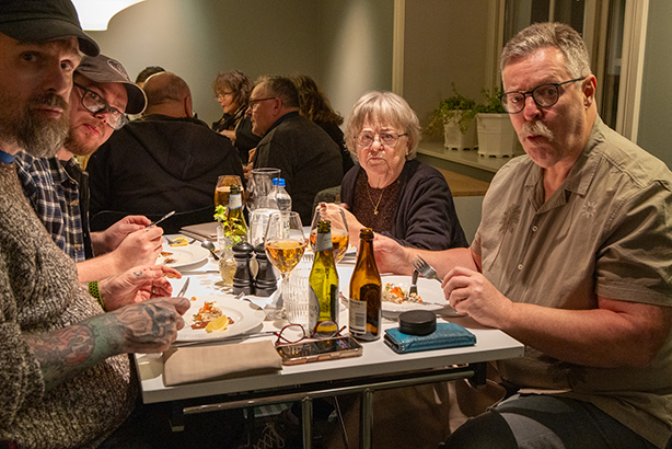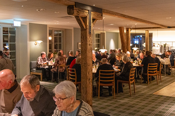 Maten som serverades var en trerätters middag med Hooks Skagen till förrätt, kalvkött till varmrätt och chokladkaka med svartvinbärssorbet.