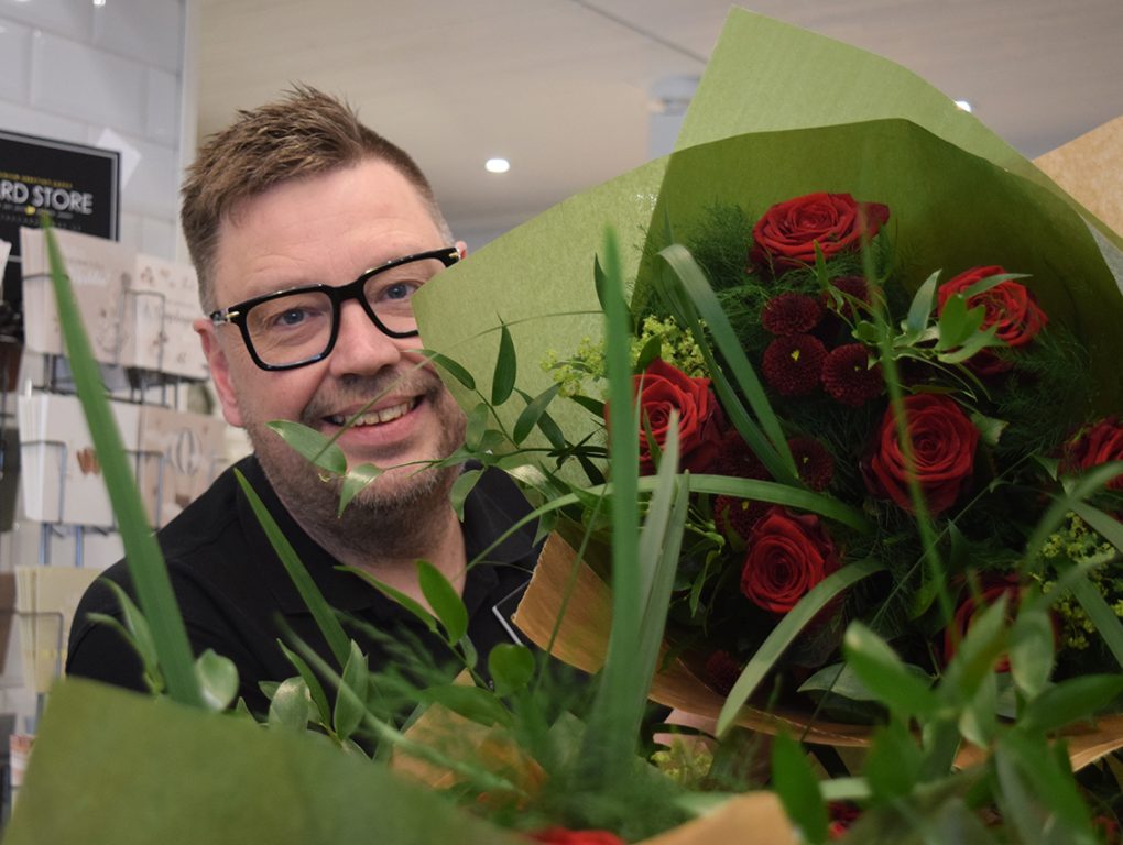 – Inför alla hjärtans dag går alla röda snittblommor upp i pris och eftersom dagen infaller samtidigt runtom i världen är tillgången på röda snittblommor höga och det ska portioneras ut. Eftersom efterfrågan är stor blir inköpspriset därefter, skulle vi i vår tur ta vad vi behöver så hade vi inte fått blommorna sålda, berättar Christian när han kör ut en ny vagn med buketter till butiken.
