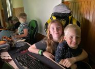 När vi besöker Folkets hus på lördagen så har alla installerat sig och precis kommit igång. Salen är mörk och persiennerna neddragna. Det enda som lyser upp är färgglada datorskärmar, hörlurar med lysande färger och en och annan dator som lyser i rosa eller grönt. Det är alldeles lugnt och tyst i lokalen. En glad och harmonisk stämning svävar omkring alla höstlovsglada ungdomar.