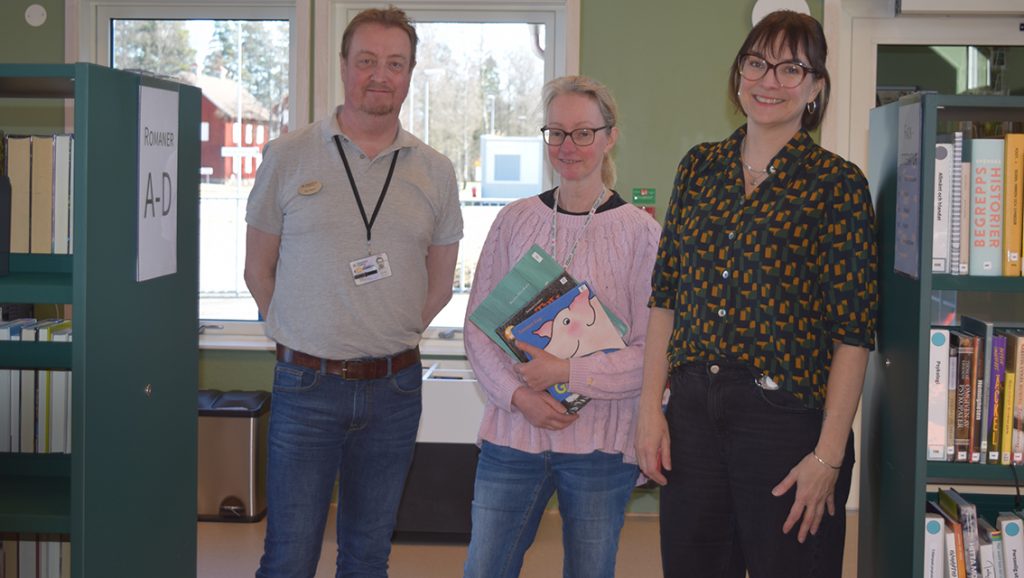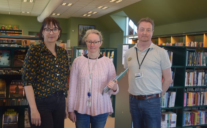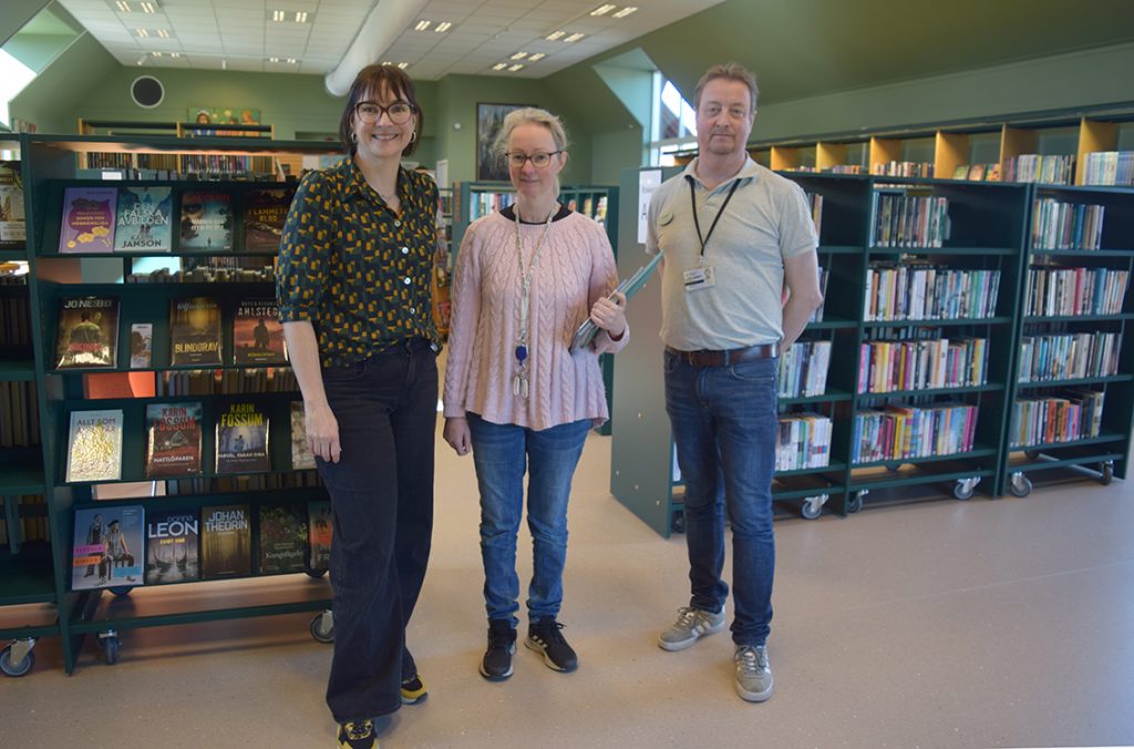 Biblioteksflaggorna hängdes upp och entrédörren öppnades. Det var nöjd bibliotekspersonal med chefen Cecilia von Strokirch, Emma Johansson och Dan Heiver som mötte oss i onsdags. Bibliotektschefen Cecilia berättar: