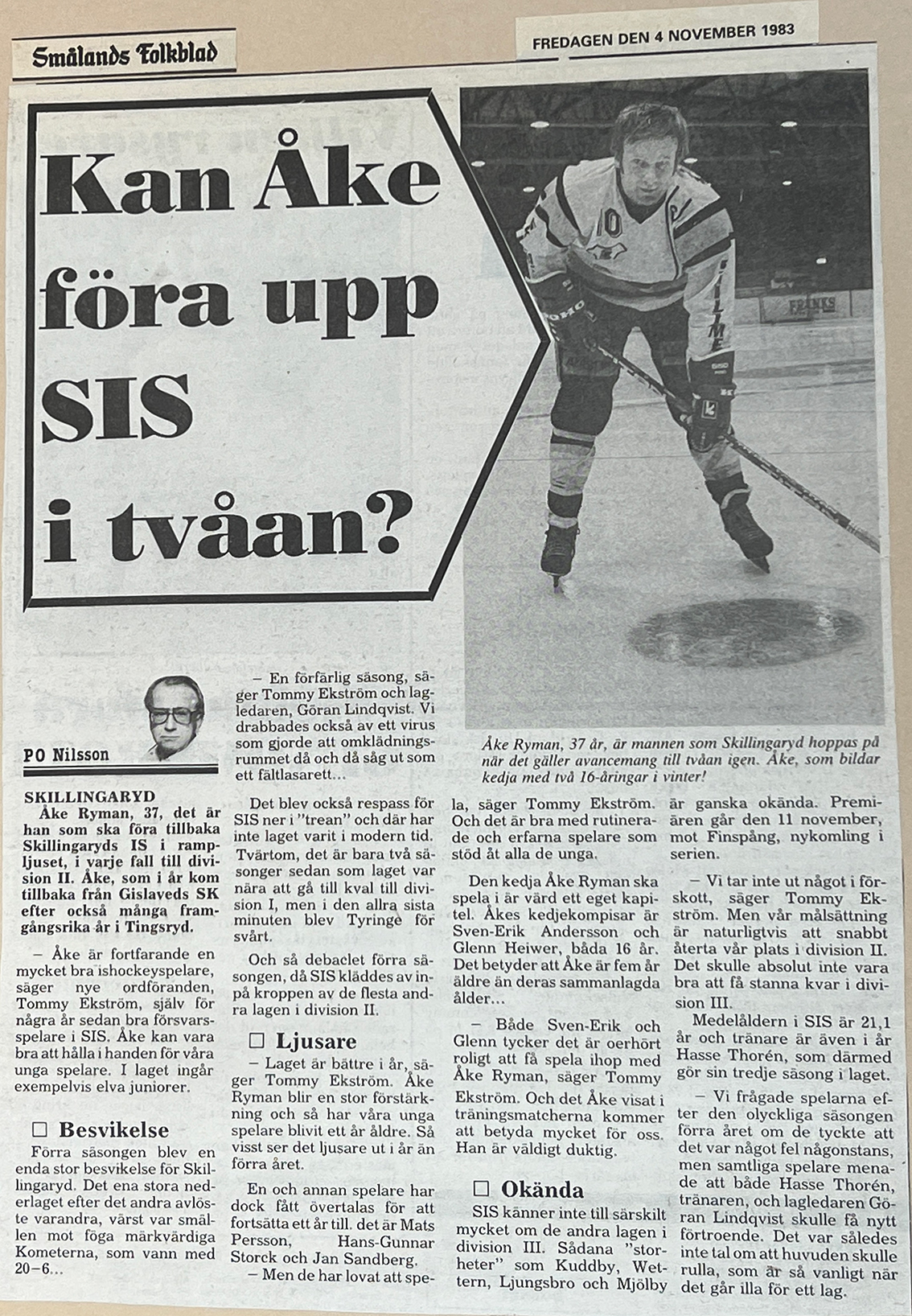 Själv minns jag Åke från lite olika tidsperioder: Först åren kring 1962–1967 när man som liten grabb såg i stort sett alla matcher i Skillingaryd. Bröderna Ryman var alltid underbara att se på isen.