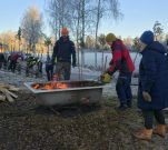Nyheter Dimman lättade över Linnesjön och solen lyste upp hela nejden när arbetslaget samlades vid badplatsen på lördagsmorgonen.
