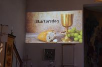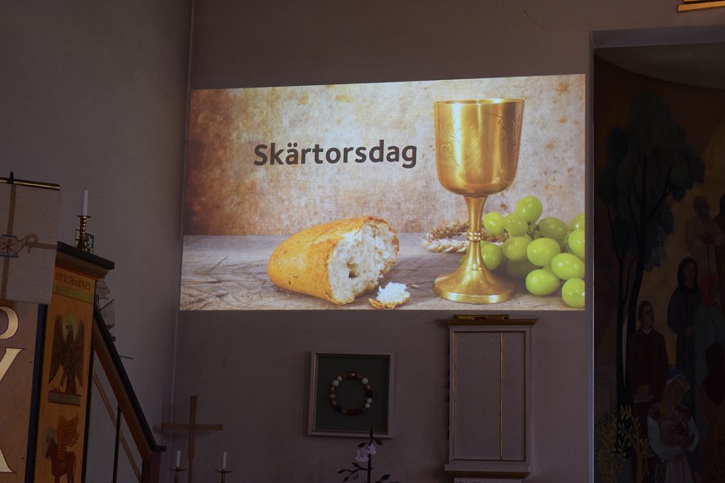 Jesus berättar: ”Nu är vi här för att fira tillsammans. Ikväll kommer man gripa mig, piska mig och döda mig. Det går inte att hindra, det som ska ske få ske. Ikväll kommer måltiden att få en helt ny innebörd. När ni äter brödet får ni äta det till minnet av mig”. Måltiden intogs vid kyrkans altre och efter efter det går Jesus till Getsemane för att be. Lärjungarna som följer med Jesus till Getsemane när han ska be somnar. Senare kommer soldater och tar Jesus tillfånga. De för Jesus till Pontius Pilatus. Folket ropar: ”Korsfäst honom!” Jesus blir dömd till döden och uppspikad på ett kors. När kvinnorna går till graven några dagar senare så upptäcker de att graven är tom. Jesus har uppstått från det döda. Jesus visare sig lite senare för lärjungarna.