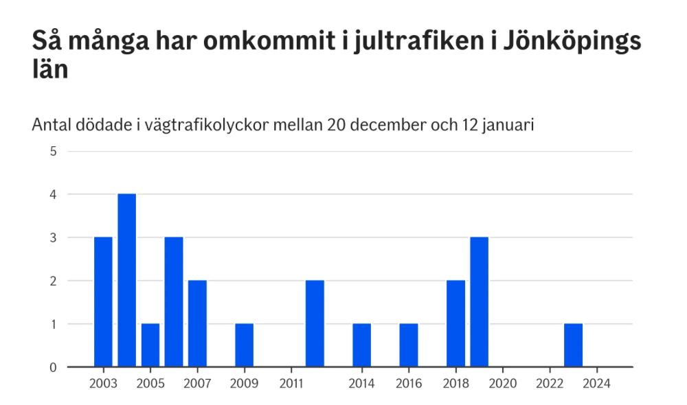 Nyheter Dödsfallen i trafiken under julhelgerna har minskat markant under de senaste tjugo åren. Även i Jönköpings län har olyckorna minskat.
