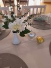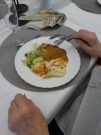 Till förrätt stod det skaldjurssnittar på menyn, till varmrätt serverades nötstek med potatisgratäng och rödvinssås och desserten bestod av vaniljpannacotta med bärsås. Mums, vilket käk!