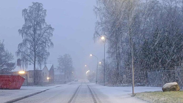 Snön föll ymnigt i går eftermiddag, helt klart vinterväglag. Bild: David Alin