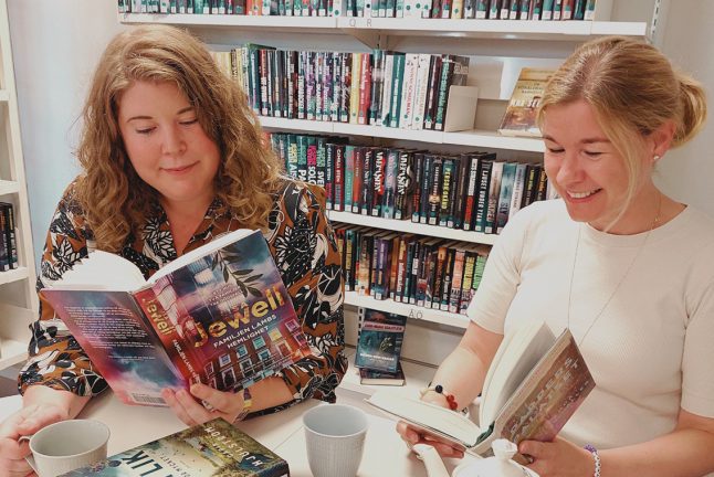 Emma Olsson och Karin Alm jobbar i biblioteken i Vaggeryds kommun. De märker av trenden med bokinspiration hos unga via TikTok. Bild: Biblioteket