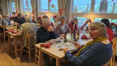 62 medlemmar och personal fick äta av ett välsmakande och rikligt julbord. De som inte kunde komma, på grund av sjukdom, fick med sig varsin välfylld matlåda med julmat hem.