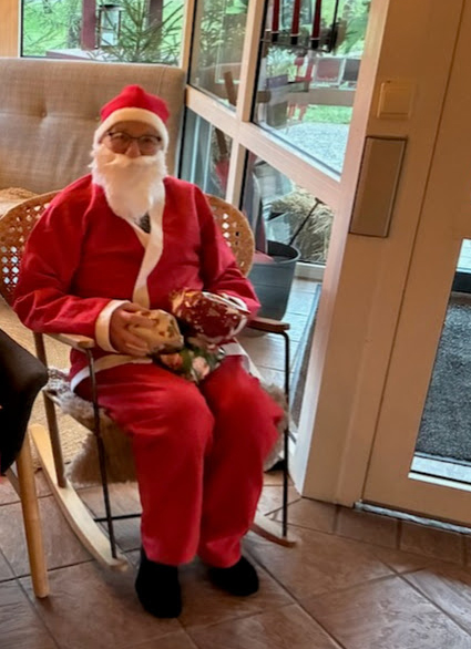 Till sist, vid utgången satt tomtegubben och delade ut julklappar till alla medlemmar, ett kärt besök som seden sig bör.
