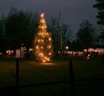 Plötsligt är det tomtedags- tomten kom på besök till hembygdsparken. Med sig hade han chokladtomtar som han delade med sig av till barnen. Med käpp och lykta i handen tog han sig runt den långa vändan som det var att gå igenom hela marknaden. Det var försäljare och stånd överallt, förbi smedjan och ända bort till vagnhuset. Runt hela parken brann eldar i hemmasnidade eldkorgar.