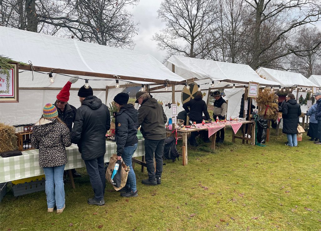 Regnvåt gräsmatta och regntunga skyar var det knappt någon som tänkte på, i alla fall inte efter klockan 11 då julmarknaden började.