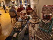Personalen på restaurang Linnéa hade dukat upp ett mycket läckert julbord till det 50-tal som deltog i julavslutningen. I den juldekorerade matsalen fanns en imponerande samling pepparkakshus, som tillverkats på Furugården.
