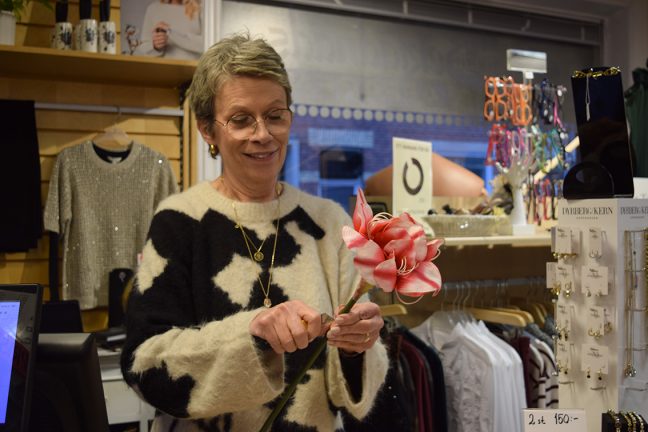 Kerstin på beklädnadsaffären förbereder för julskyltningen på söndag