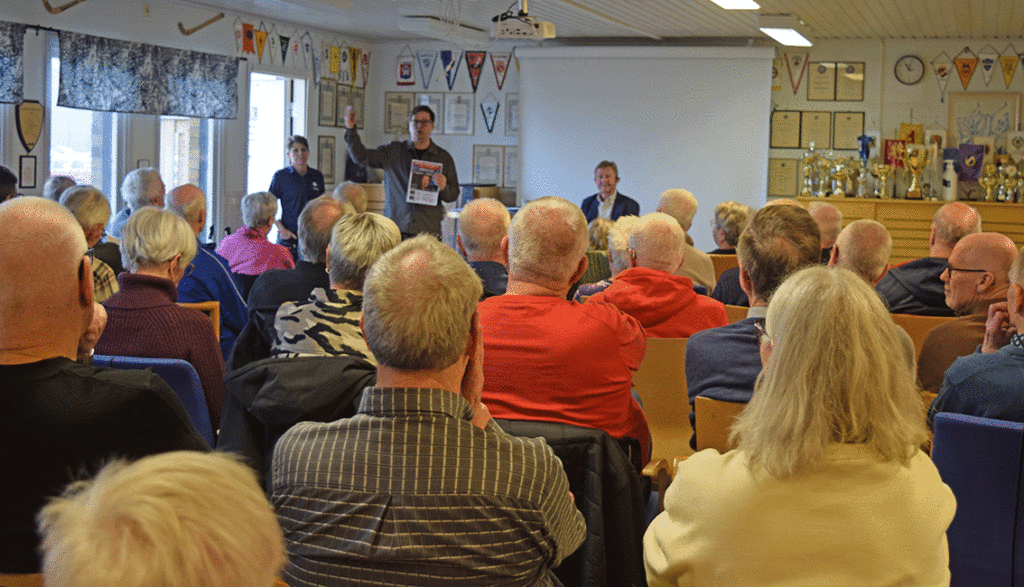 ”Motion och Gemenskap 60+” är ett samarbete mellan SPF Seniorerna Vaggeryd, PRO Vaggeryd och Vaggeryds IP, kunde glädjas över en mycket välbesökt årspremiär i klubbstugan. Ett 60-tal personer, som var intresserade av att både få lite motion och lyssna på Staffan Lindeborg, fanns på plats.