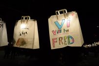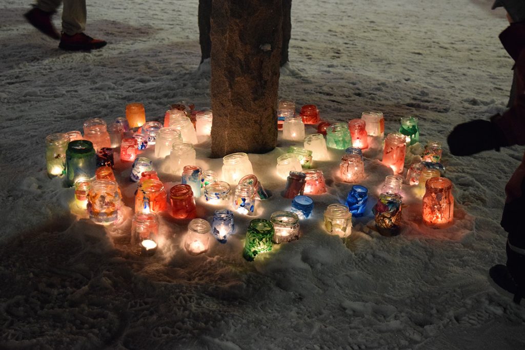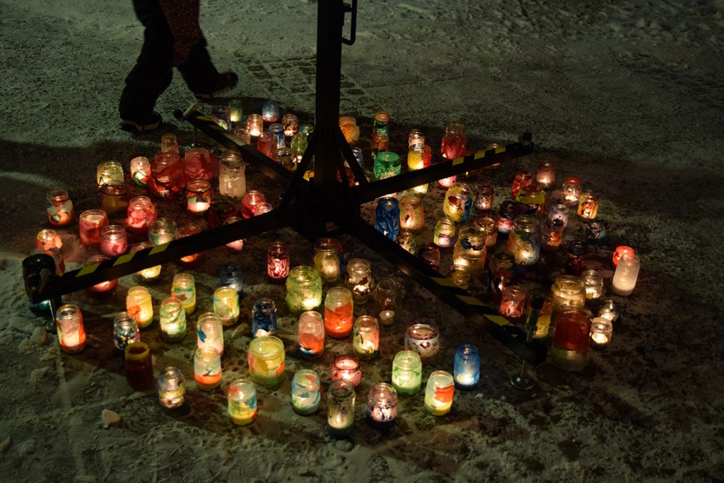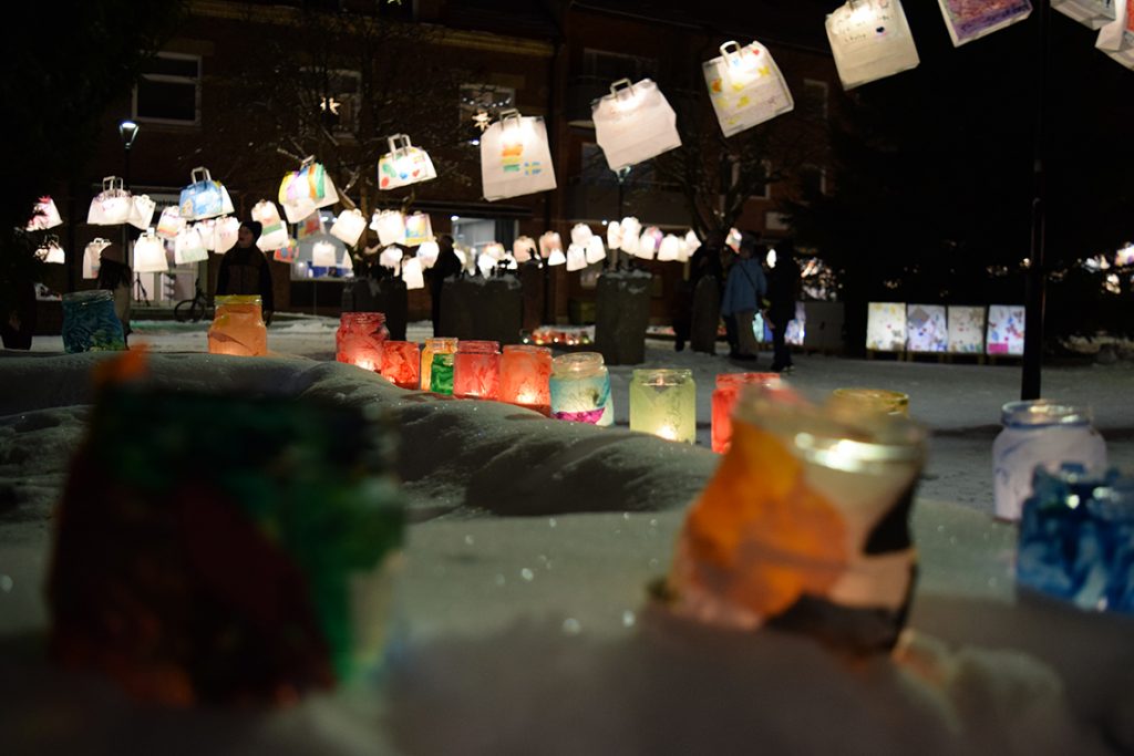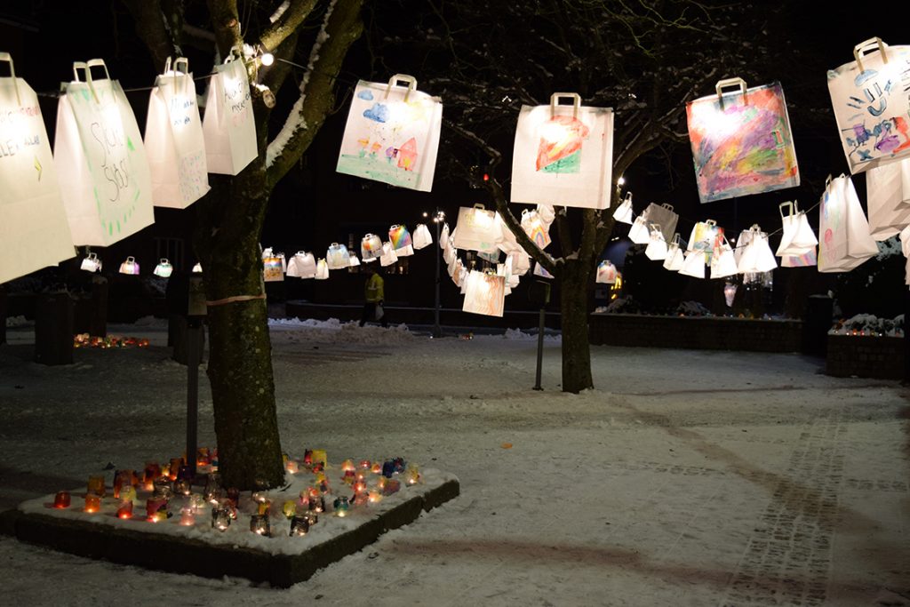– Alla elever i årskurs tre i kommunen har gjort totalt över 200 påsar och man har skrivit sina tankar kring barnkonventionen. 700 ljusen har förskolebarnen tillverkat. Eleverna har sett sin påse och de påsar sin klass gjort och här får man se det hela. UC/UG  har öppet i kväll och diskjockey förser oss med musiken.