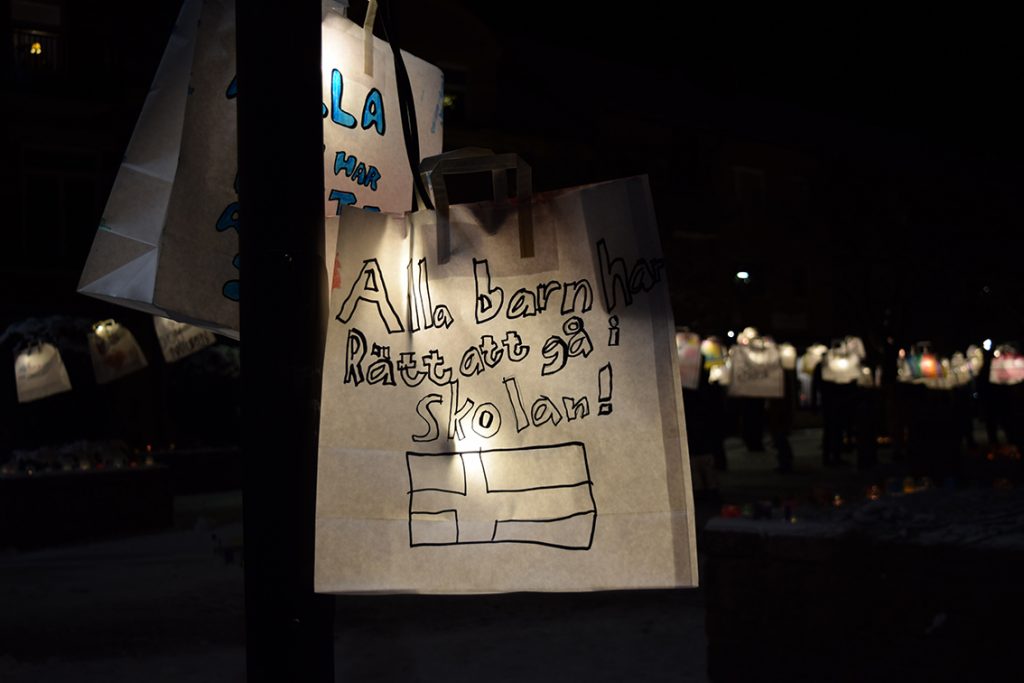 I torsdags var det barnkonventionens dag. I går, fredag, var torget i Skillingaryd upplyst med påsar och ljus.