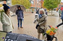 – Även att det är dåligt väder så ska jag ut på marknaden, konstaterar Jörgen Johansson och kikar upp mot den gråa himlen och löven som virvlar runt i hög fart på torget.