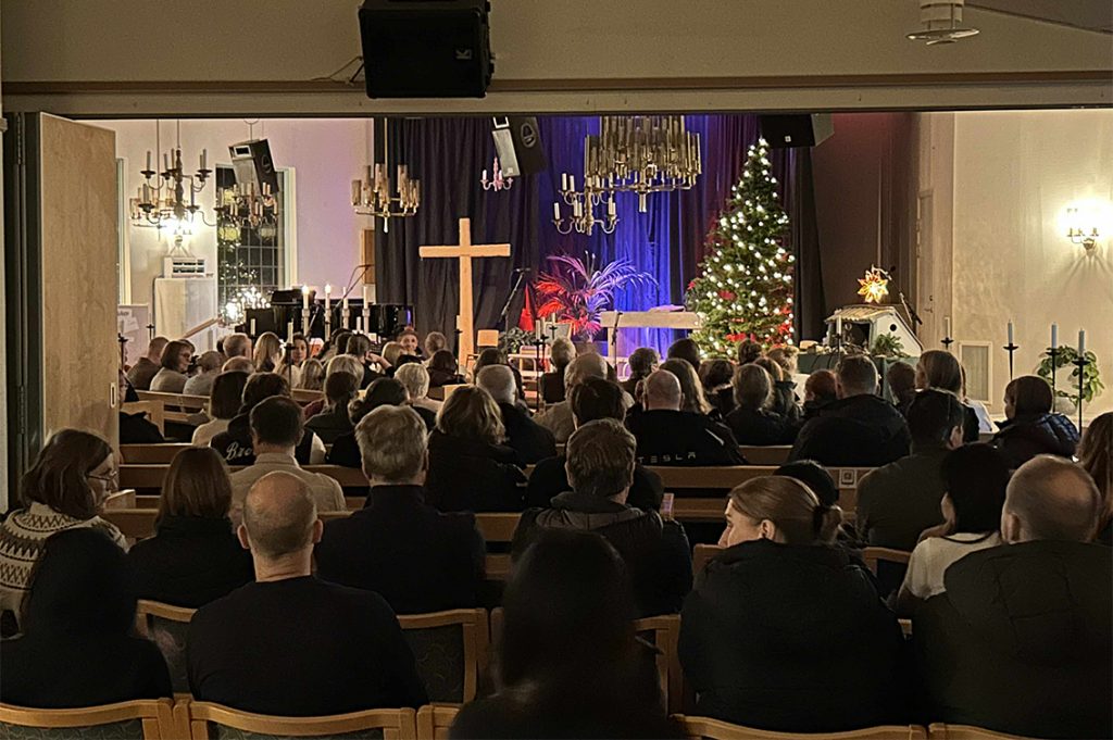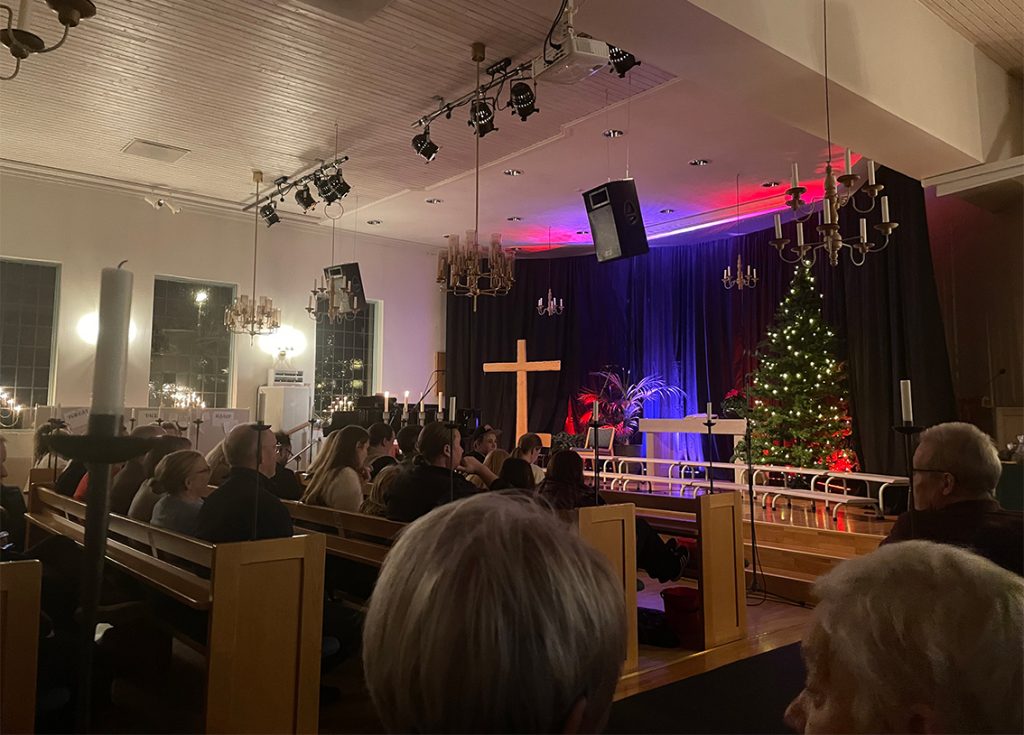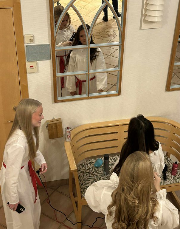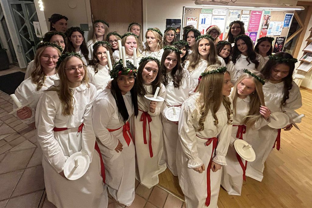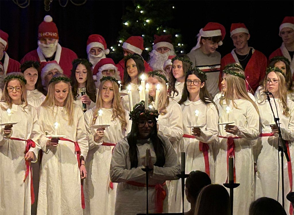 Nyheter Den här morgonen fylldes Equmeniakyrkan av lussefirande niondeklassare från Hjortsjöskolan. Då bjuder de åttorna och sjuorna på luciatåg. I går kväll fick elvernas familjer en förhandsvisning.