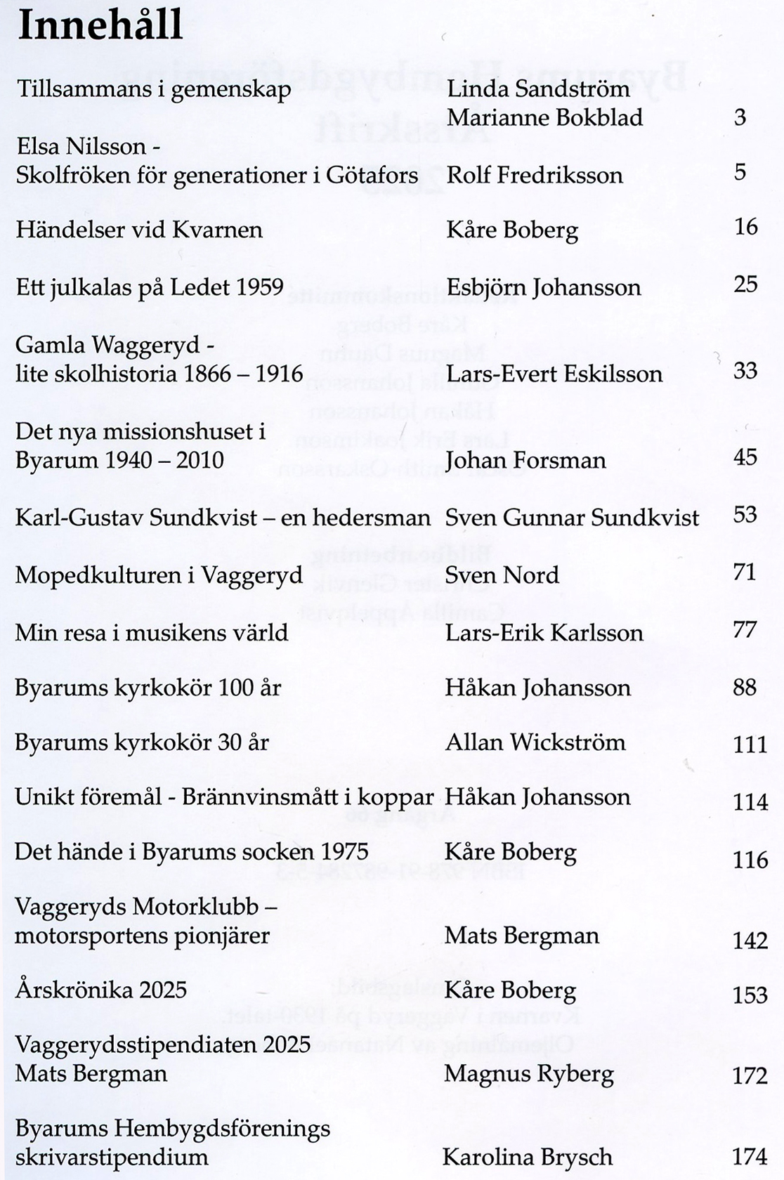Nyheter Byarums Hembygdsförening bjuder som alltid upp till en årsskrift lagom till jul. Nu är det dags för årgång 66.