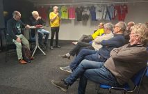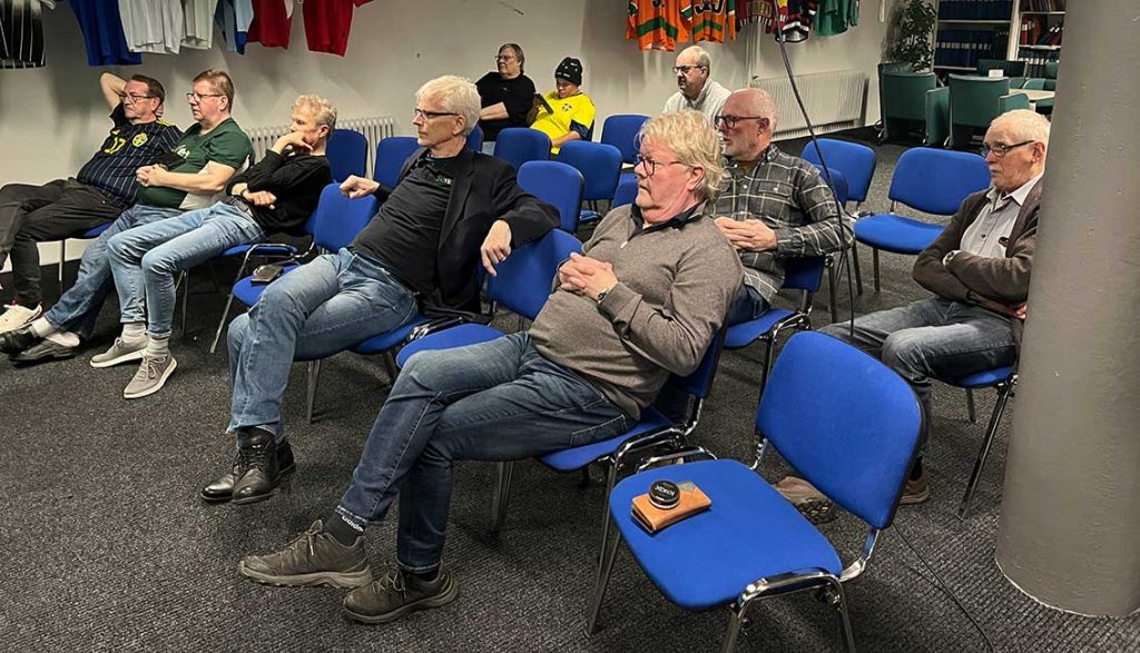 Ett 25-tal personer hade samlats för först mingel följt av Pär AJ Perssons berättelse. Han gick igenom VM-turnering efter VM-turnering från starten 1930 i Uruguay.