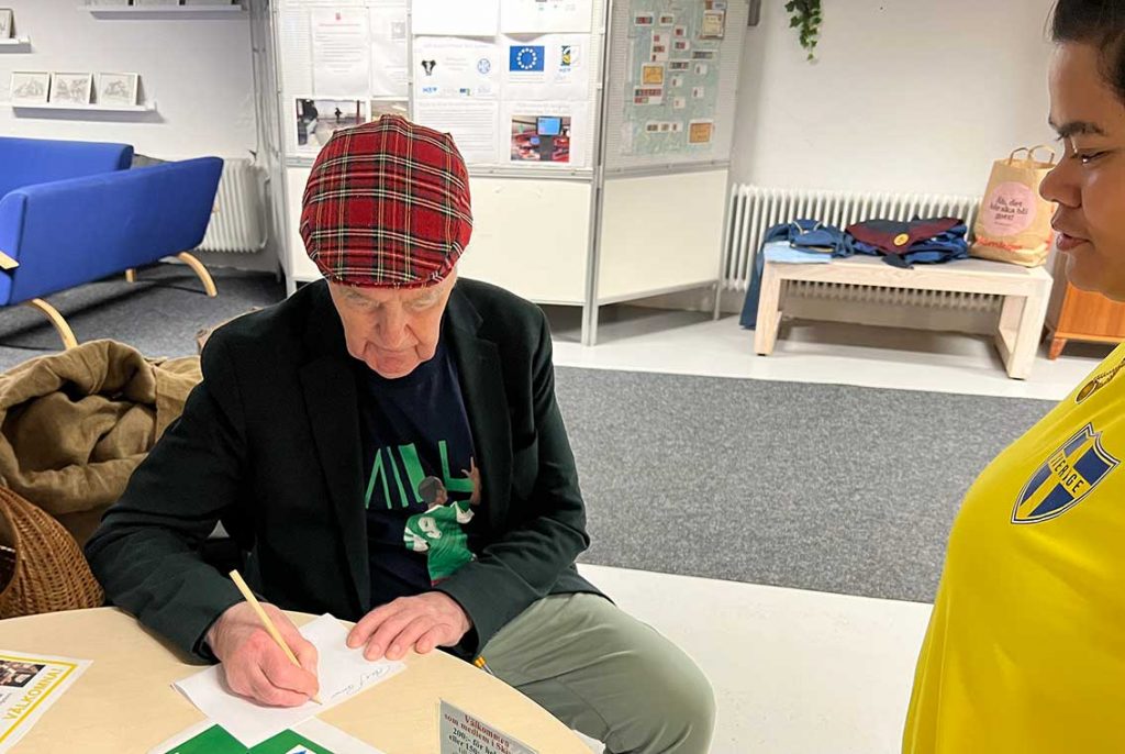 Många stannade kvar hos Skivaryd för att se segermatchen. En av dem var Pär AJ Persson som efter rundvandring i lokalerna passade på att skriva in sig som medlem hos Skivaryd.