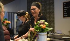 Åsa Bokinge bakom kafédisken kommenterar; ”Vi har haft en riktigt bra första vecka här i Skillingaryd och alla är så positiva, det känns jättebra”.