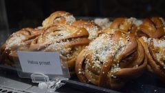 Gillis och Irene Hjelm står i kön och på frågan vad som ska inhandlas blir det ett snabbt svar; ”Kanelbullar såklart”.