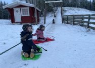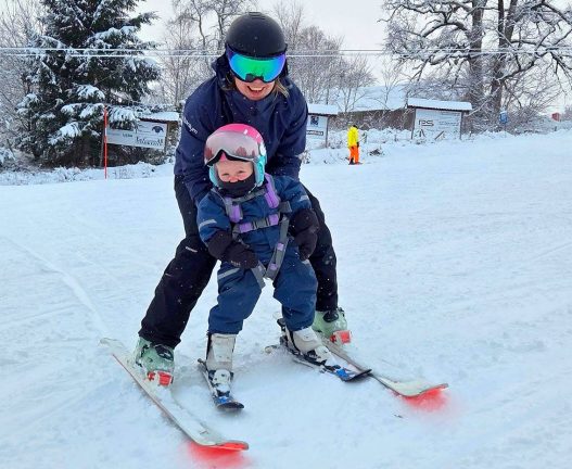 Jennie Wendefors med liten åkte i backen i Kyllås under premiärdagarna. Bild: Privat