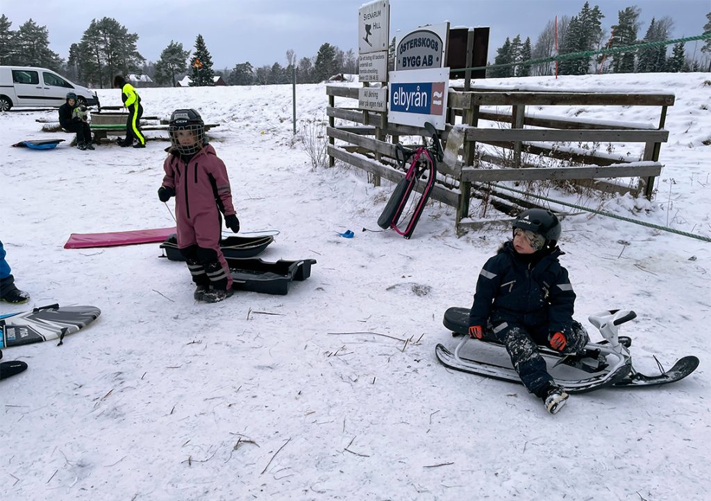 – Vi brukar åka hit nån gång i alla fall varje säsong. Vi har ju bra pulkabacke på friluftsgården i Vaggeryd, men det är rätt skönt att det finns lift här, säger Joakim.