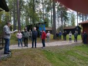 Sammankomsten inleddes i huvudbyggnaden, Storstugan i mangårdsbyggnaden – ett tvåvånings parhus från 1800-talets första hälft. Lennart Andersson berättade om historiken bakom hembygdsförenings tillblivelse. Det var kantor och folkskolläraren Allan Wickström som tog initiativet till föreningens tillkomst år 1935 och året efter inköptes parstugan från Nydala för 1 200 kronor.