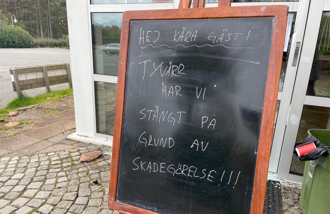 Tyvärr har vi stängt på grund av skadegörelse!!!”