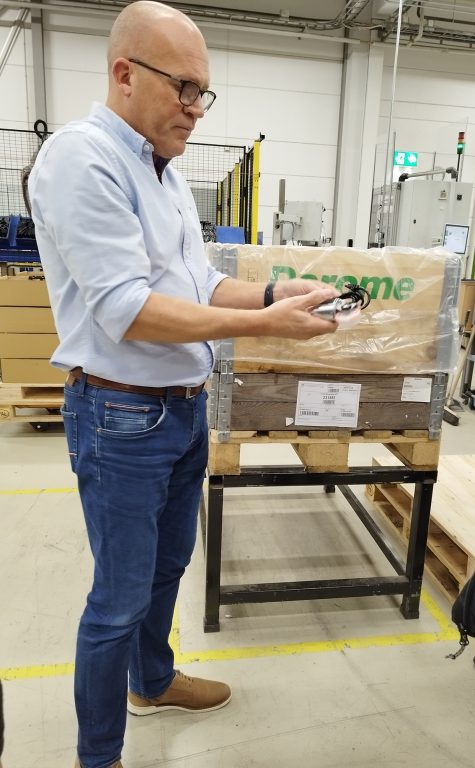 Peter Jahnsén och mångårige medarbetaren Eje Sahlstedt visade runt i kontors- och monteringsavdelningarna. Det är slående hur mycket som nu utförs av robotar i moderna industrier. Företaget har 200 anställda i Ekenässjön och 60 i Vaggeryd med huvudkontoret där, omsättning på över 70 miljoner euro och monteringsyta på 10.000 kvadratmeter i Vaggeryd och tillverkningsyta på 20 000 kvadratmeter i Ekenässjön. Det är klimatsmarta industrilösningar och företaget har egen test- och utvecklingsavdelning.
