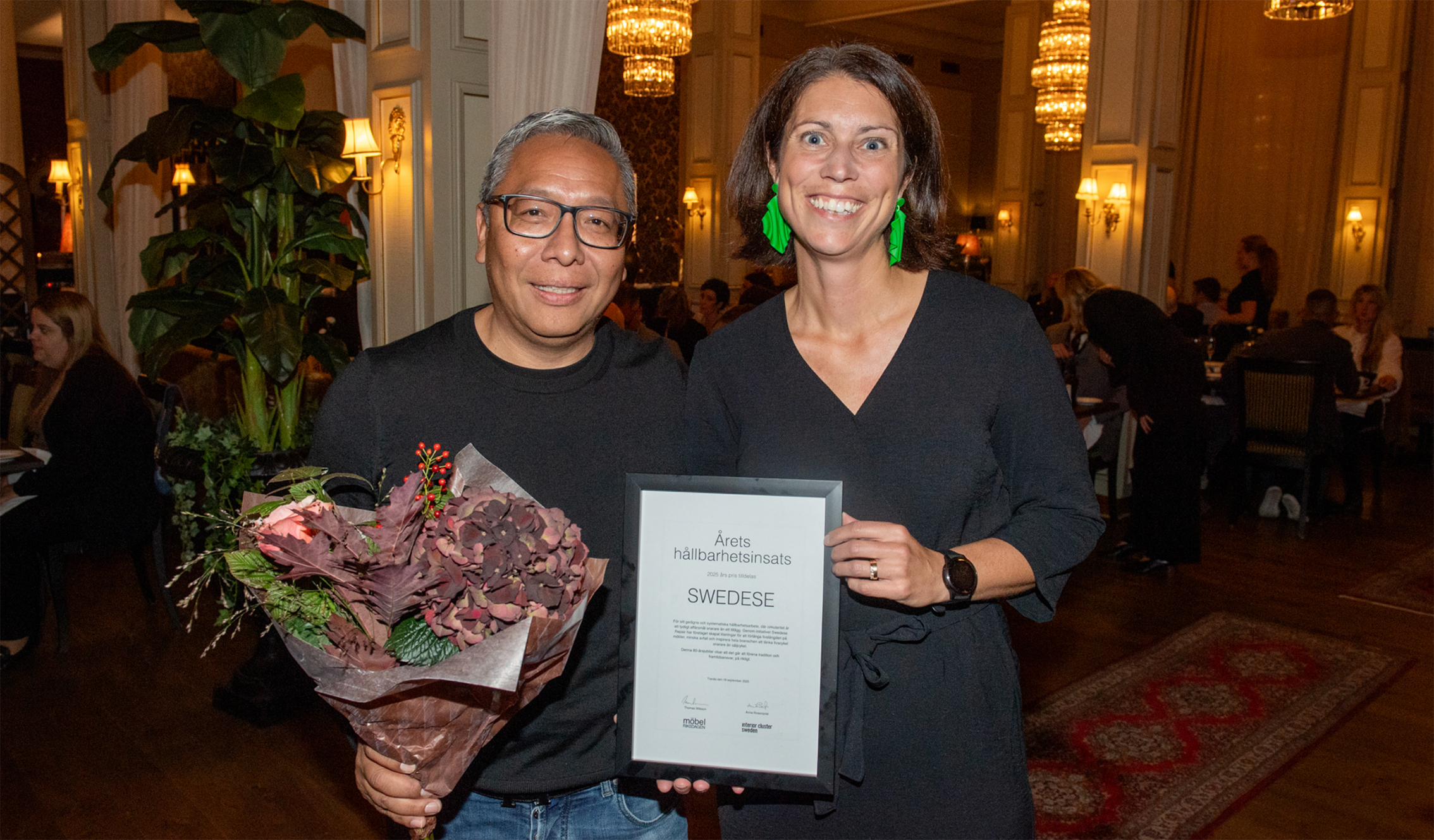 Årets upplaga av Möbelriksdagen, en branschträff där företag, entreprenörer, designers och andra aktörer inom möbel- och inredningsbranschen samlades för att diskutera aktuella frågor, utbyta erfarenheter och inspirera till utveckling. I år ägde evenemanget rum i Tranås. Fem utmärkelser delades ut till företag och personer som visar vägen framåt genom hållbarhet, innovation, entreprenörskap och samverkan. Swedese fick det ärofyllda priset för ”Årets hållbarhetsinsats”.
