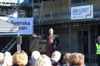 Så sa kyrkorådets ordförande Mats Bergman i sitt tal i går när över hundra personer kom och firade taket på det nya bygget vid Byarums kyrka. Kransen hängde på gaveln. Alla var samlade, så väl kyrkans personal, folk som jobbar med bygget, som människor från stiftet och medlemmar i församlingen.