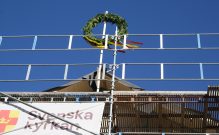 Nyheter – Vid en utebliven taklagsfest förekommer det att istället för kransen så hängs det upp en docka föreställande kyrkorådets ordförande vid denna byggnad. Det var ju skönt att vi slapp det.