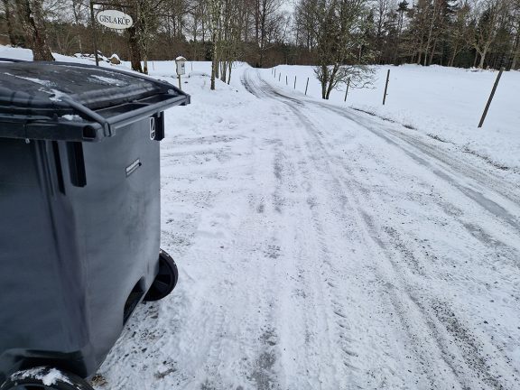Men på vår enskilda väg fungerar vintervägsunderhållet. Vi har fantastisk snöröjare som ser till att vägen är farbar, sandat har gjorts i omgångar, undra vad som mer krävs? Vi alla boende, postbilen, övriga transporter och timmerbilen kan köra på vår väg, men inte sopbilschauffören. Det verkar lite märkligt. Som vana landsbygdsbor vet vi att det går inte att köra som man gör när det är sommarväglag, man ser var gruset är och där håller man sina hjul. Sedan om det är lite i kanten på vägen eller inte men man kommer fram. Att säga att man inte kan innan man försökt köra hit, det köper jag inte.