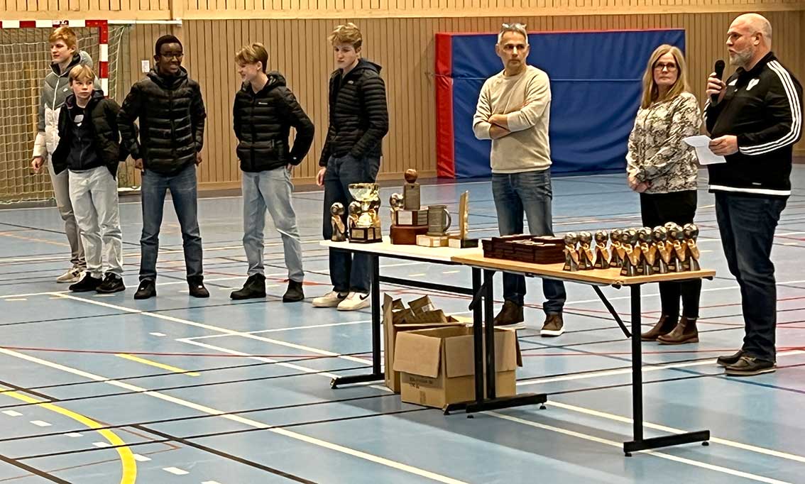– Intresset har varit stort under året, säger fotbollssektionens ordförande Fredrik Berg som tillsammans med Julia Törnberg var huvudansvariga vid prisfesten i Skillingaryds Arena.