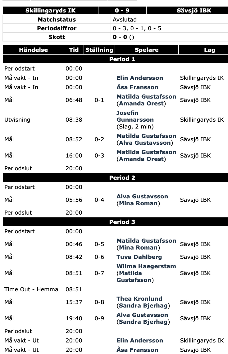 Innebandy Skillingaryds IK föll i damtvåan mot Sävsjö. Uppdaterat.