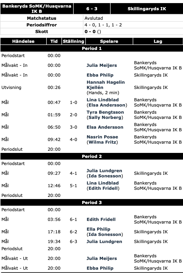 Innebandy Skillingaryds IK föll i damtvåan mot Bankeryd/Husqvarna B.
