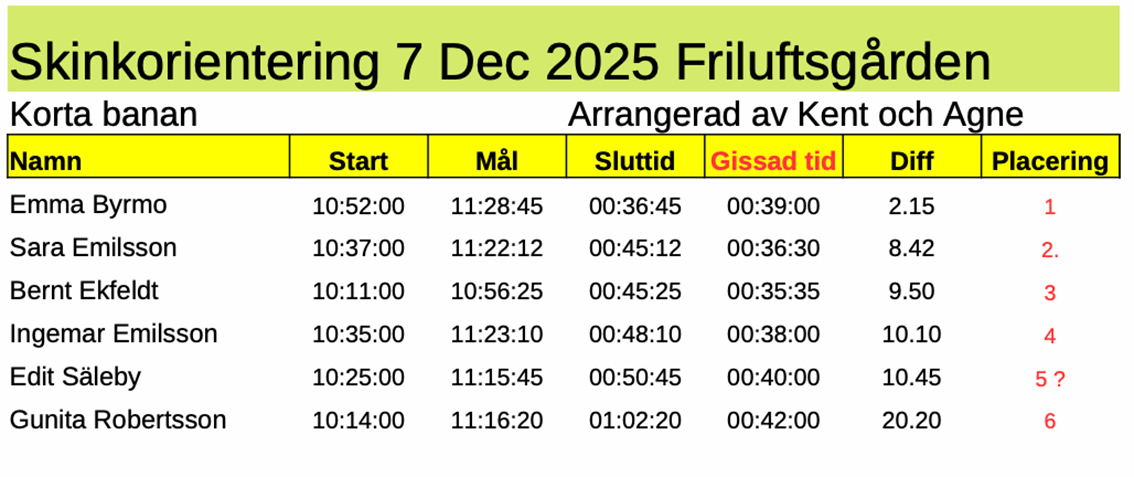 Och… de som hamnar sist i tävlingen är alltså de som inte lyckats gissa sin tid runt banan, de får arrangera tävlingen nästa år.