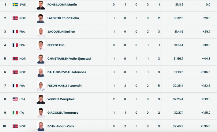 Det var franskt i ledningen inför det sista skyttet men efter två bom fanns en chans för Martin Ponsiluoma. Han tog och och med felfritt skytte kändes segern klar redan inför slutrundan.